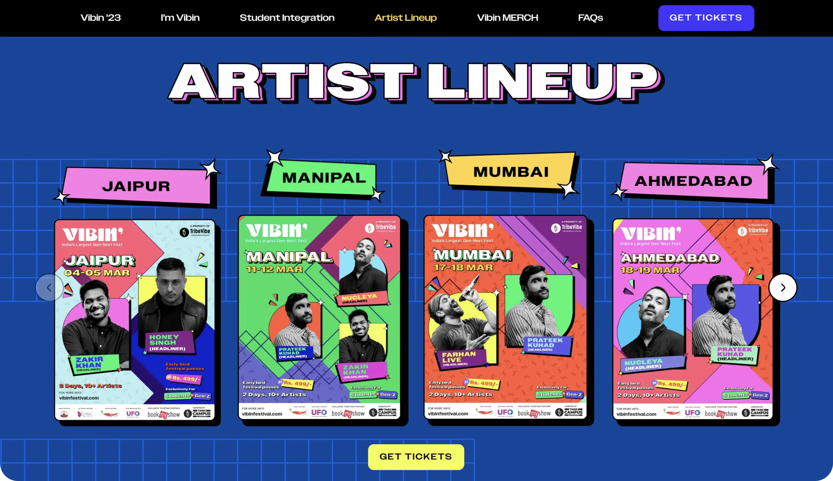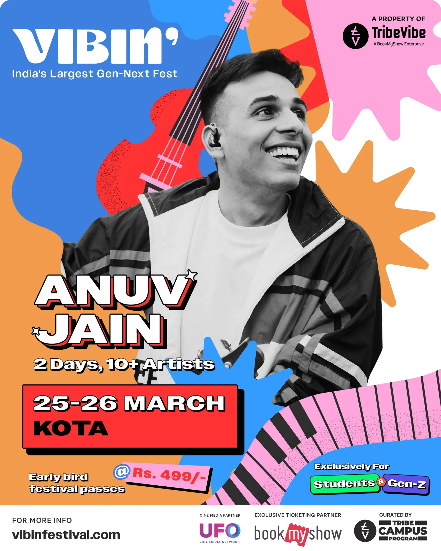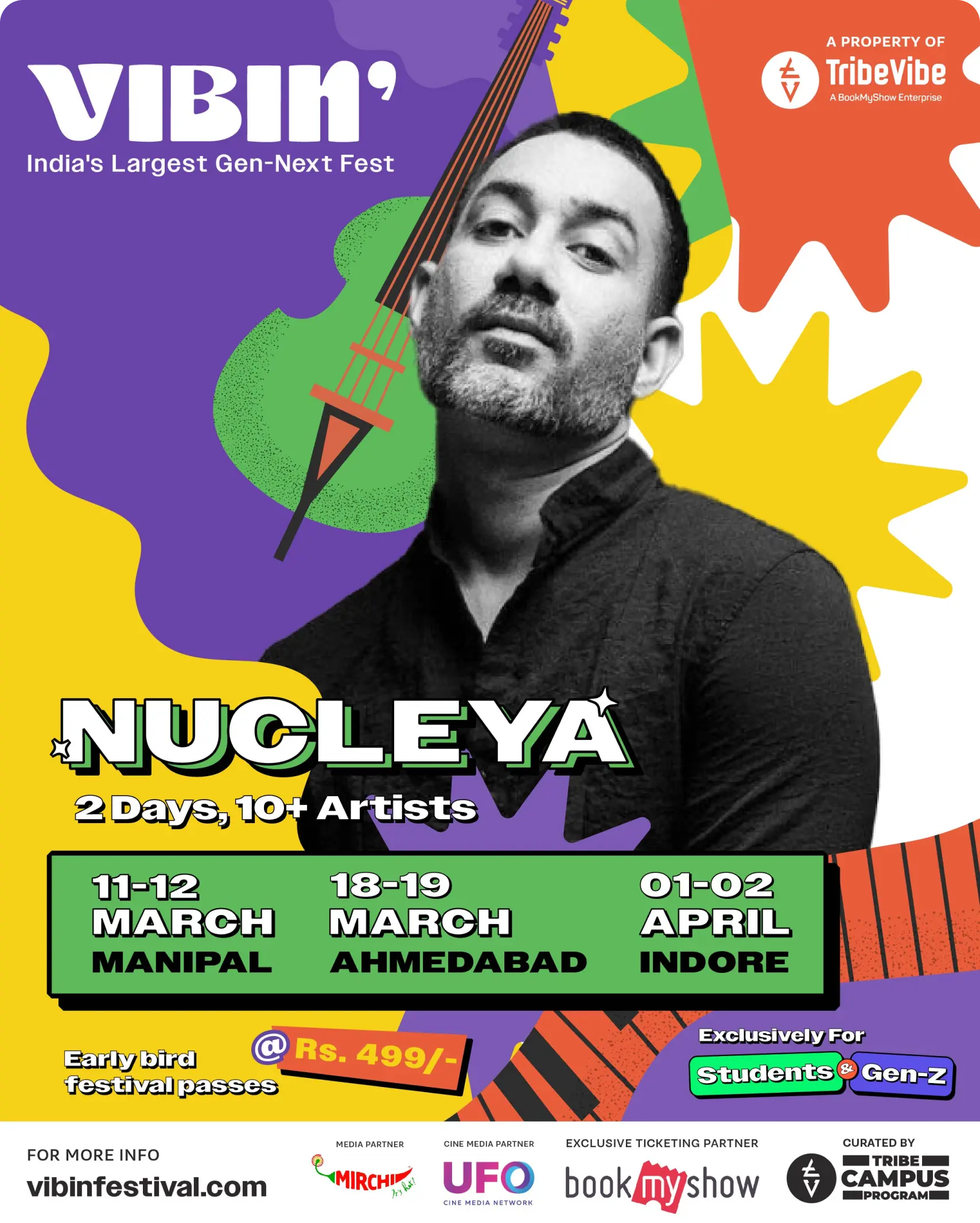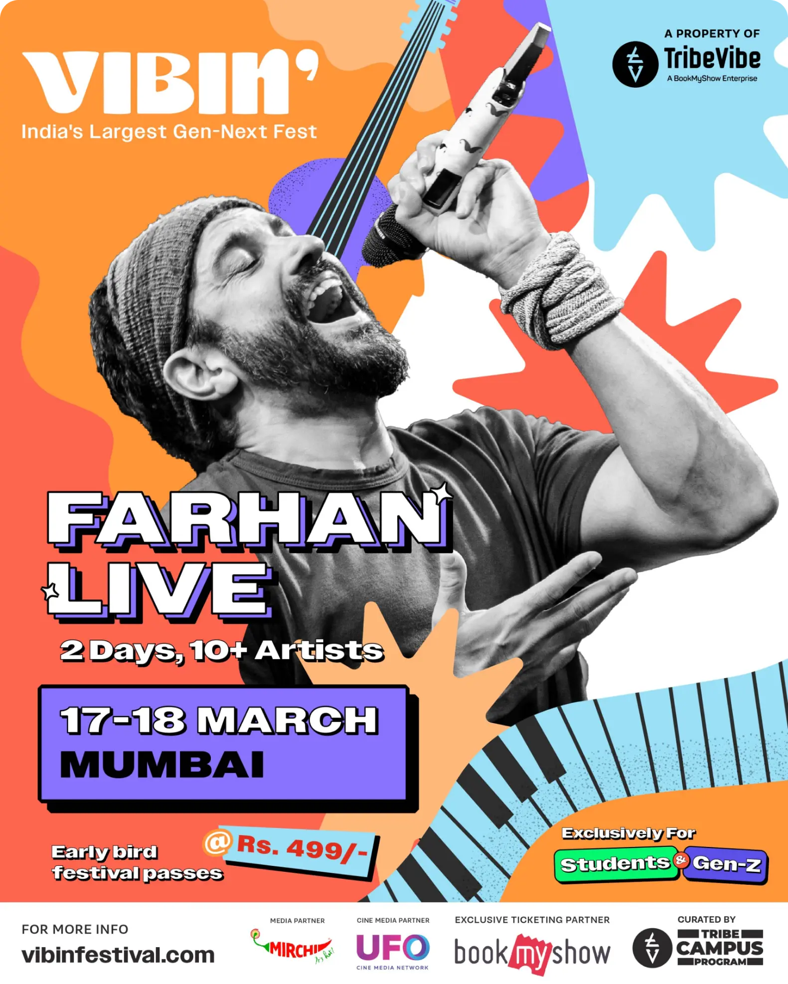Vibin’ Festival was conceptualized as the largest Gen-Next Festival in India, curated by TribeVibe – a property of BookMyShow, for students aged between 13-25. The aim of the festival was to create an event exclusively for and curated by the student community. The event was organized across 7 cities in India with 50+ top artists across genres like music, dance, stand-up, poetry, and much more, and stalls across categories like food, fashion, art, and gaming.